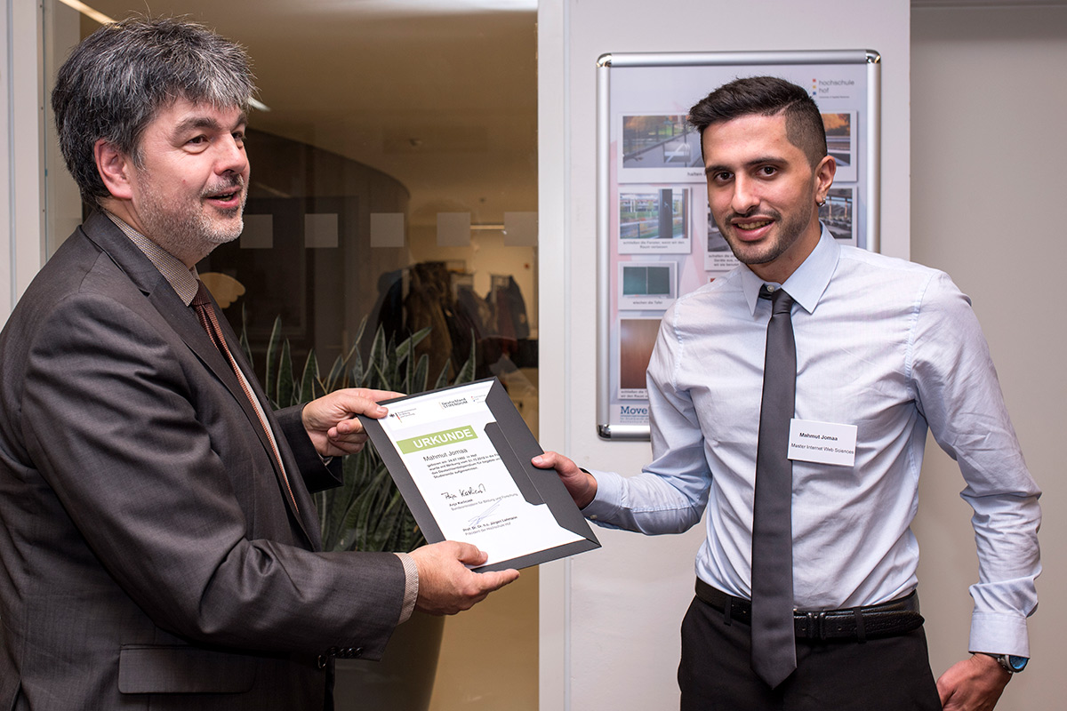 „Die Stipendiaten haben unseren ersten Eindruck von der Hochschule Hof nochmals sehr positiv bestätigt. Dort finden wir genau die qualifizierten Nachwuchskräfte im Bereich Internet Web Sciences, die wir für unser Unternehmen brauchen. Darüber hinaus hat die Veranstaltung eine erfrischende Vielfalt an praxisorientierten Studienschwerpunkten gezeigt. Wir waren davon und von den vielen engagierten Studierenden beeindruckt.“