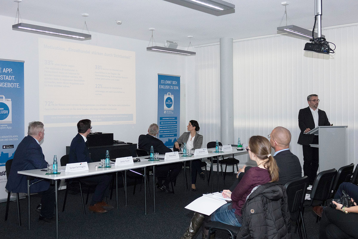 Aus diesem Grund trafen sich die Initiatoren der App „Weiden EXKLUSIV“ mit Medienvertretern und beteiligten Händlern am Firmensitz von Speed4Trade. Anlass war die Vorstellung der regionalen Coupon-App für exklusive Coupons, Angebote und Gutscheine, die den stationären Einzelhandel stärken soll.