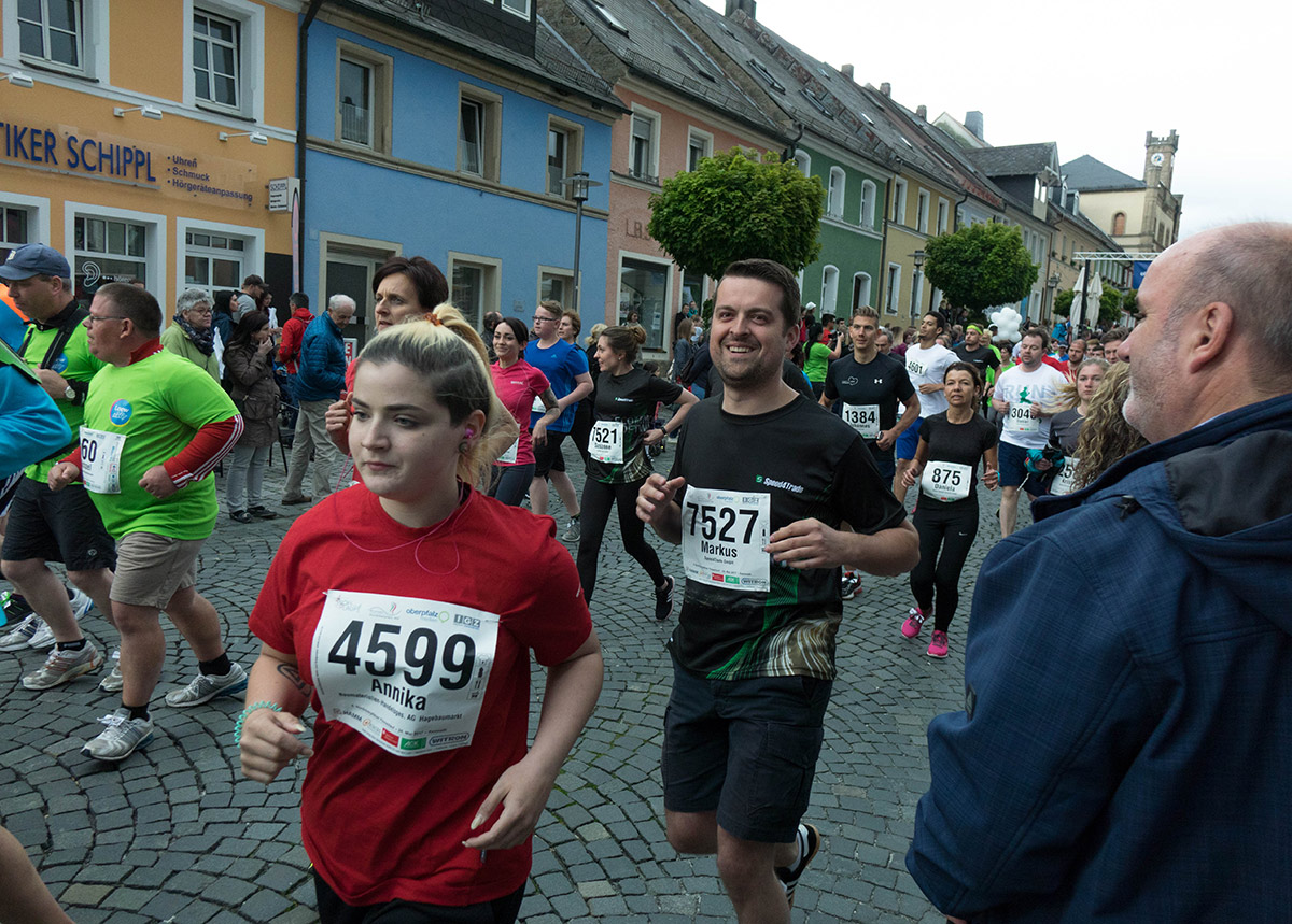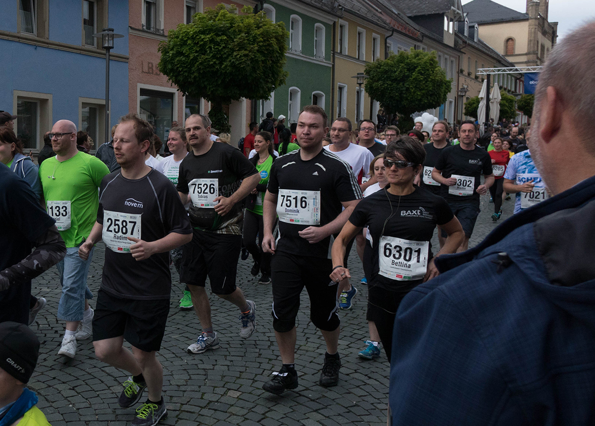 Ein paar Stunden vor dem Lauf wurden bei einem herzhaften, gemeinsamen Mittagessen in der Firmenzentrale in Altenstadt die Energiereserven aufgefüllt. Nach Feierabend ging es dann nach Kemnath, wo schon tausende Zuschauer, Musiker und Trommelgruppen auf den offiziellen Beginn warteten. Das buntgemischte Speed4Trade-Team war hochmotiviert und spornte sich gegenseitig an. Etwas Skepsis herrschte noch hinsichtlich des Wetters, aber Wind und Regen hielten sich zum Glück (bis auf ein paar Tropfen) bis zum Ende zurück.